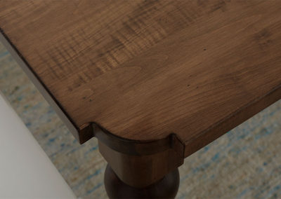We are committed to the crafting highest quality tables you will find for a reasonable price. Our tables are all made from hardwoods such as Oak, Maple, Cherry or 1/4-Sawn Oak. All hardwoods have variations in their color and grain. During the assembly process all tables are glued and screwed for increased strength and durability, in addition tenon and mortised construction is also used based on the design requirements of your table. Each table is hand sanded prior to staining.
